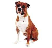 çeneleri, kaslı bir görüntüsü vardır. Bu iri cüsseye rağmen sanki ayaklarının üzerinde dans ediyor gibidir. Geniş bir göğsü, omuzlarından başına doğru daralan bir boynu ve hafif bir gerdanı vardır. Geniş bir alın, kaslı yanaklar ve gözlere doğru kıvrımlı bir yüz şekline sahiptir. Ağız tarafının dıştan görünüşü sanki bir kutuya benzer. Kulaklar hafifçe sivri ve dik gibidir. Bazen kulaklara estetik operasyon uygulanmasına rağmen genellikle kestirilmemiş tercih edilir. Göz çevresi çeşitli renklerde olabilir. Fakat beyaz ırklarda gözün çevresinin siyah olması aranan özelliktir. Burun siyah veya gridir. Siyah burunlularda dudaklar siyah olmalıdır. Bununla beraber pembe de kabul edilebilir. Ön bacaklar kemikli ve kaslı, aynı zamanda düz görünümlüdür. Omuzların gerisi düz ve kaslıdır. Kuyruk kalın ve nokta gibidir. Tüyleri kısa, sert, beyazın tonları renginde, bej, kahve ve benekli lekeler şeklinde olabilmektedir. Erkekler gözle görülür şekilde dişilerden güçlü ve kaslıdır.